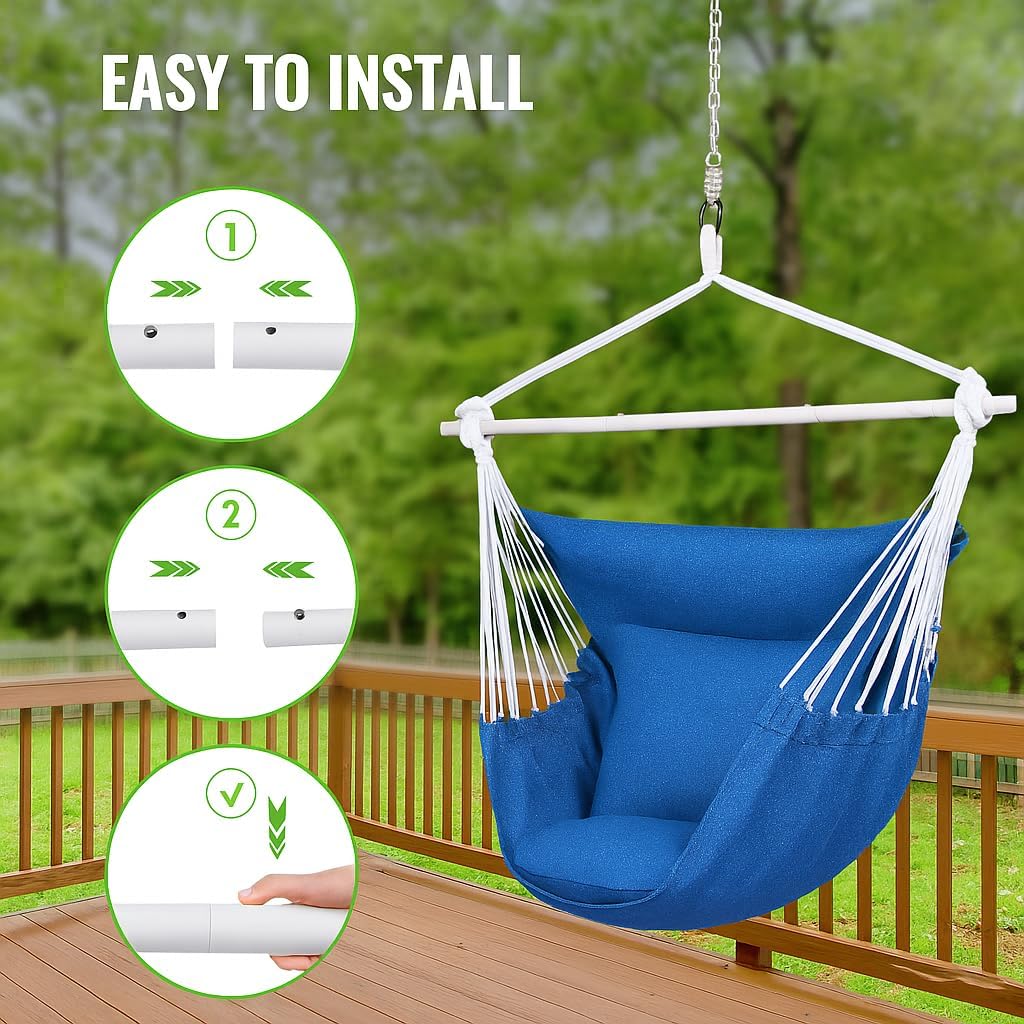 | Item Type Name | Backyard Expressions Hanging Hammock Chair Swing with Cushions & Hanging Kit – 500 lb Capacity, Cotton Blend Fabric, for Indoor/Outdoor Use – Includes Chain, Hooks & Spring – 5 Colors |