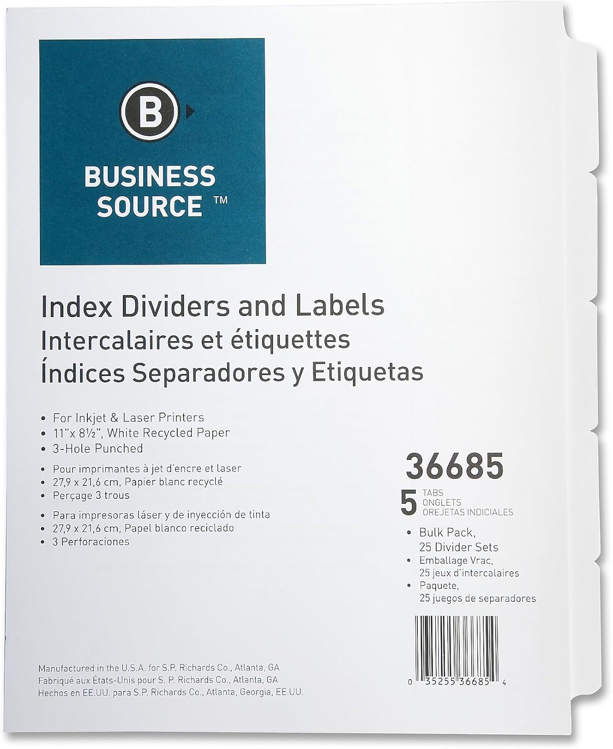 | Item Type Name | Business Source Punched Laser Index Dividers - 5 Blank Tab(s) |