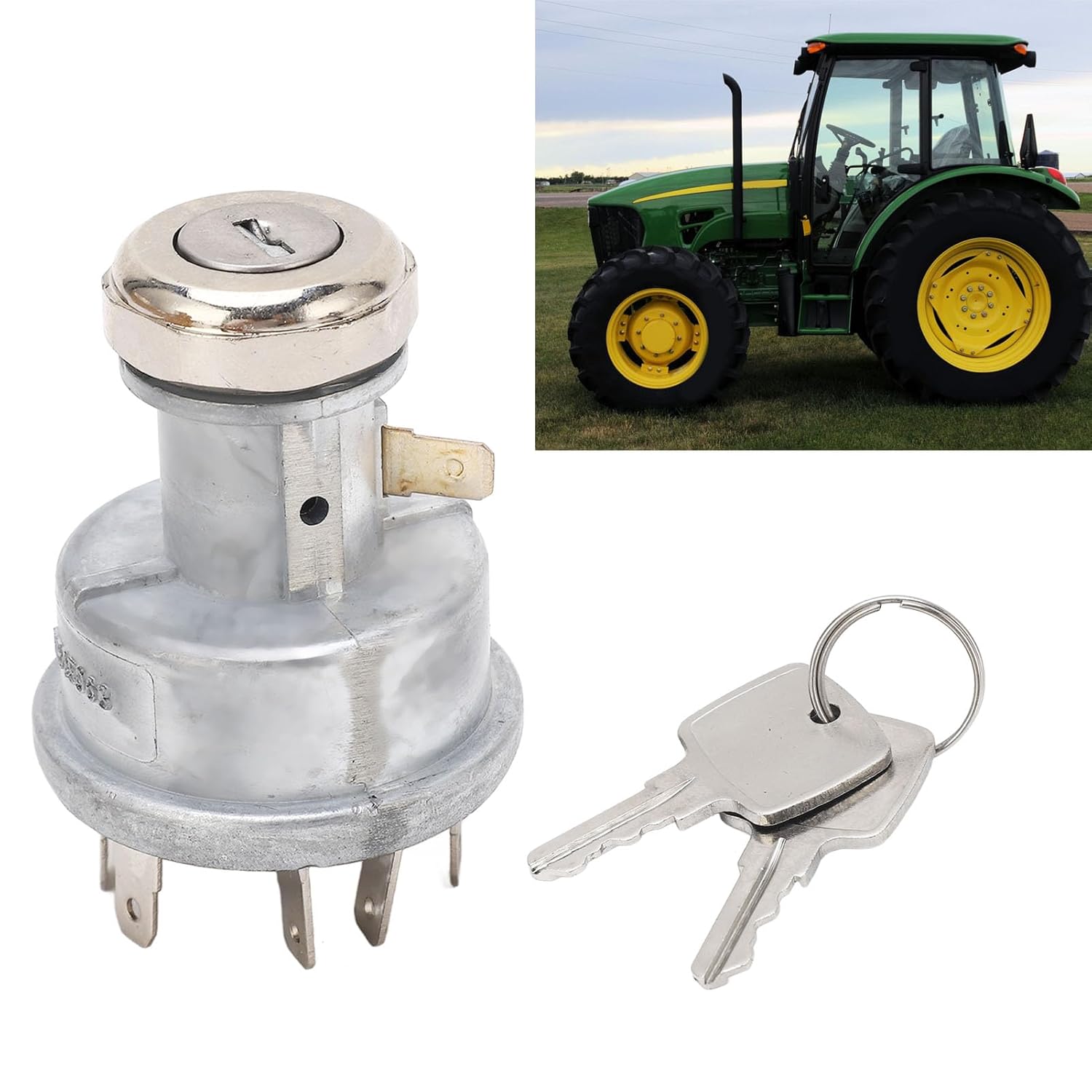 Item Type: Tractor Ignition SwitchOE: RE45963Fitment:Fit for Tractors Model:904 1054 1165 1170 1175H 1204 13544200 4300 4400 4500 4600 47005105 5200 5210 5215 5220 5300 5303 5310 5400 5410 5420 5500 5510 5600 5605 5615 57006300 6405 6500 66005055E 5065E 5075E 5078E 5085EPackage List:1 x Tractor Ignition Switch2 x Key Note:Please double check the part number and fitment of your item, matching information is for reference only.
